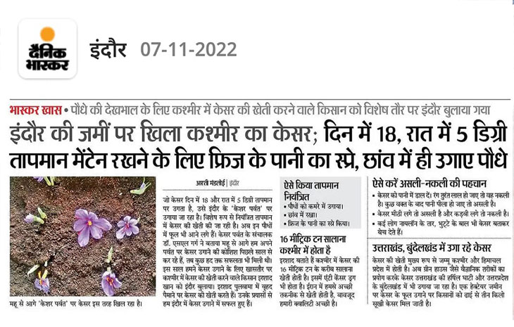 इंदौर की ज़मीन पे खिला कश्मीर का केशर