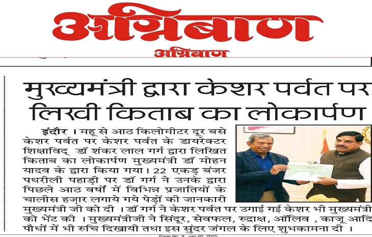 मुख्यमंत्री द्वारा केशर पर्वत पर लिखी किताब का लोकार्पण