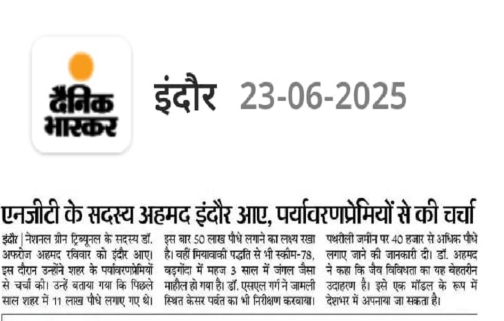 एनजीटी के सदस्य अहमद इंदौर आए