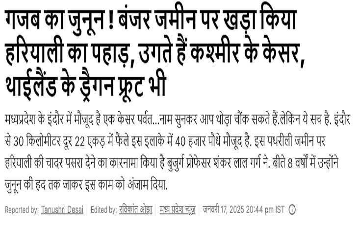 गजब का जुनून ! बंजर जमीन पर खड़ा किया हरियाली का पहाड़